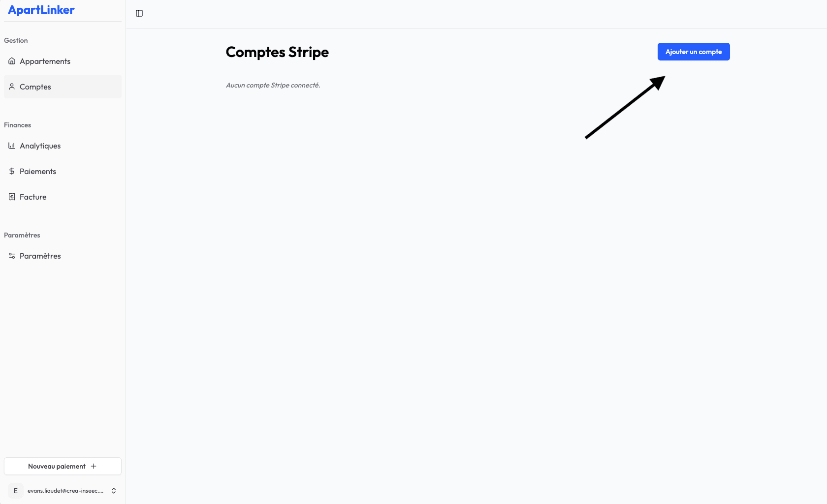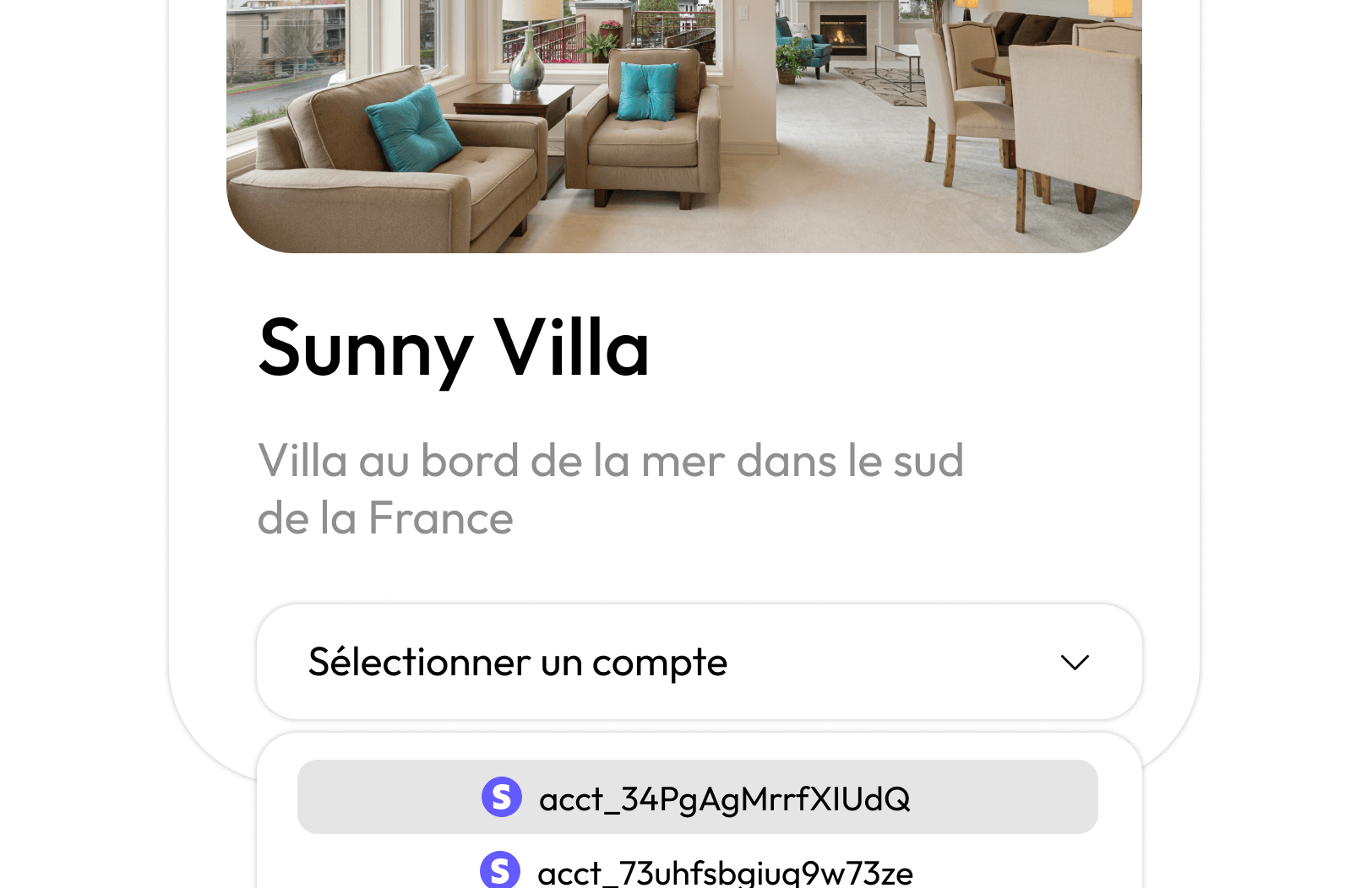 Une fois votre compte Stripe ajouté, rendez-vous sur la page Logements et sélectionnez le compte que vous venez d'ajouter au logement souhaité.